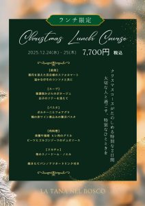 この日はChristmasコースのみの営業となります。よろしくお願い致します。